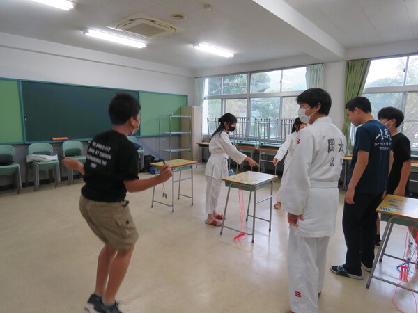 1コマ目は体験授業です。クイズやゲーム、実験、体を動かすなど(武田の授業って面白いなぁ)と感じてもらえたようです。皆さん、楽しく真剣に授業を受けていました。