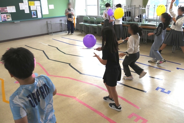 2コマ目は、部活動ゲームラリーです。各教室で武田のクラブの生徒が、ミニゲームを用意して待っています。ゲームに挑戦しクリアできたらシールをもらい、次のゲームへ!今年は昨年よりもゲーム数も多く「全部回れなかったぁ」と残念そうな声も聞こえましたが(すみません・・・)、ゲームラリー中はあちらこちらで歓声もあがり、「楽しかった!」と感想を述べてくれる児童の皆さんもたくさんいました。