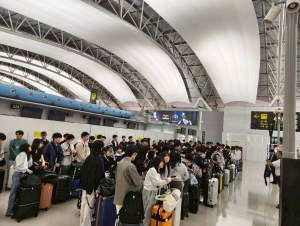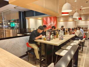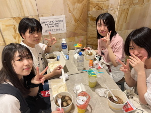 そして広島駅から新幹線で新大阪駅、新大阪駅からバスで関西国際空港へ。関西国際空港で各々が夕食に向かいました。旅行前最後の日本食ということもあり、主任からもSTOP暴飲暴食の指示が、、、初めての飛行機、初めての海外旅行の生徒もおり、手荷物検査では緊張の顔も見られました。無事に全員飛行機へ搭乗し、いざシンガポールへ。