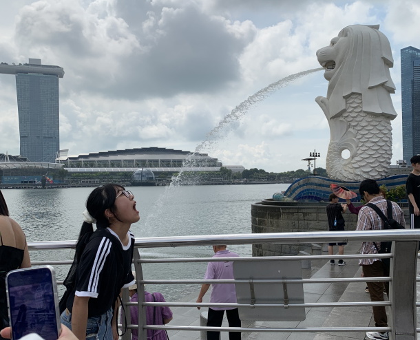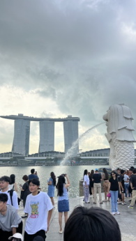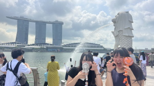 その後、各クラス毎に分かれて、リバークルーズに向かいました。マーライオンを今度は川の方から眺め、定番のマーライオンの水を口に入れるような写真を撮る生徒も。食後のリバークルーズなので、みなさんもマーライオンにならないように、とガイドさんからジョークも頂きましたが、ボートは電動化されており、酔うことなく終えました。