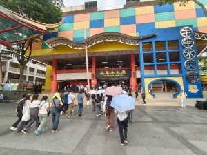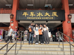 次にチャイナタウンへ。さすがにドリアンに挑む生徒はいなかったように思いますが、ココナッツミルクを味わう生徒、どこで買って何に使うのか分からない長尺の中国筆を買う生徒、準備してきた「修学旅行2日目」という絵と共に写真を撮る生徒などなど。