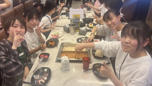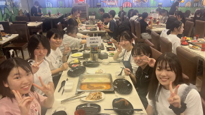 夕食はGoroGoroというお店で鍋料理を食べました。韓国風の2種類のダシに、それぞれ具材を入れたり、ビュッフェ形式での食事を堪能しました。なかでもスパイシーチキンの強烈なスパイシーさに多くの生徒・教員が翻弄されました。ダシは日本の鍋に近く、とはいえ違う味のもので、異国の味を堪能できました。多くの生徒が締めのラーメンまで完食し、お腹いっぱいでホテルへ向かいました。