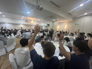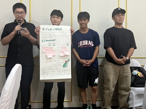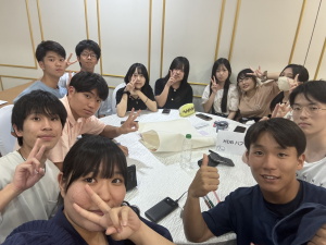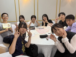 各地から戻ってきた後は、それぞれのグループで言った場所に関して模造紙にまとめて、発表しました。各グループの発表の後、現地の大学生とさらに交流を深めました。事前に大学生に聞きたいこともまとめており、会話が捗りました。また好きな日本の文化や勉強方法、特技のマジックを披露してもらうなど、大いに盛り上がりました。大学生との別れに際し、SNSの交換をしたり、熱い抱擁のもと、悲しすぎて大号泣する生徒も、、、それだけ素晴らしい時間だったのだと思います。