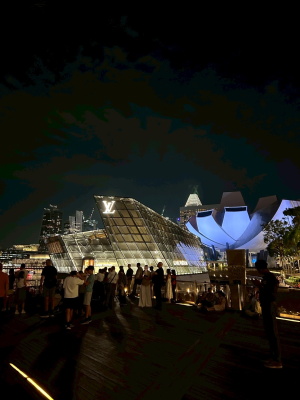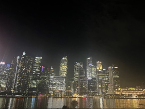 マリーナベイサンズでは、夜景とスペクトラ(音楽・噴水・プロジェクションマッピングを融合させたショー)を鑑賞しました。昼間に見るシンガポールの景色とは違い、高層ビルの光もあって、圧巻のショーでした。疲れも見えますが、それ以上に新たな体験と学びが多く、生徒たちの表情はとても良いです。