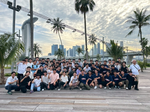その後はマリーナベイサンズに行きました。シンガポールの中では高級ホテルの位置づけで、周りのショッピングモールや、その周辺施設では散歩やランニングをされている方も。とてつもない規模のランニング集団と遭遇し、「福男レース?」とボソッと言う生徒の切れ味に、まだまだ元気そうだと安心しました。よく見ると武田の生徒も走っていました。いいぞ陸上部!