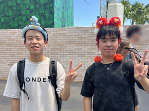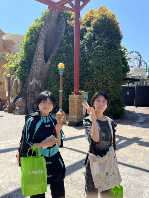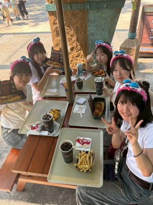 USSでは、カチューシャをつけて、様々なアトラクションを満喫しました。ジュラシック・パークでは最後の落下でびしょ濡れになる生徒も…。