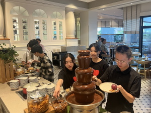 USS終わりの集合もバッチリ時間厳守で、夕食へ。シンガポール最後の食事はELLENBOROUGH MARKET CAFEでビュッフェを堪能しました。旅の締めとして、ついにドリアンにトライする生徒の姿も。とても美味しかったそうです!
