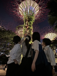 そしてガーデンズバイザベイ(昨日⑥近未来植物園)にて、光と音楽のショーを鑑賞しました。旅のエンディングに相応しい、壮大かつ幻想的なイルミネーションに、生徒たちも旅の終わりを実感し、ホロリ。