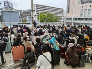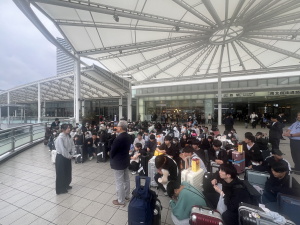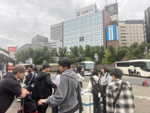 関西国際空港に到着し、バスで新大阪駅へ向かいました。すでに時間はお昼前ということもあり、少しの自由時間ではコンビニで久しぶりの日本食を手にする生徒たちが沢山見られました。