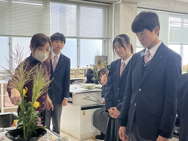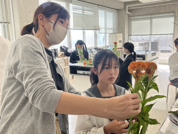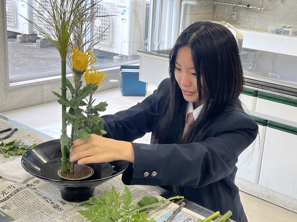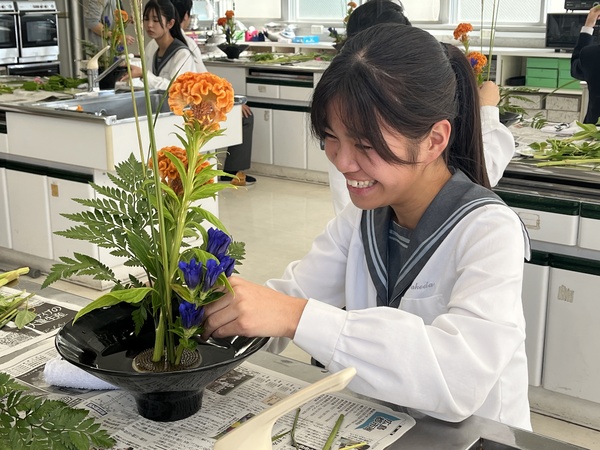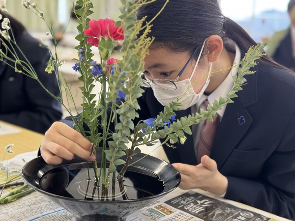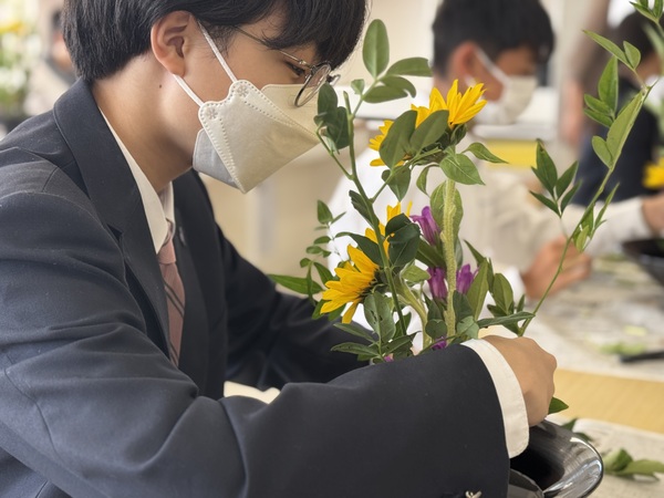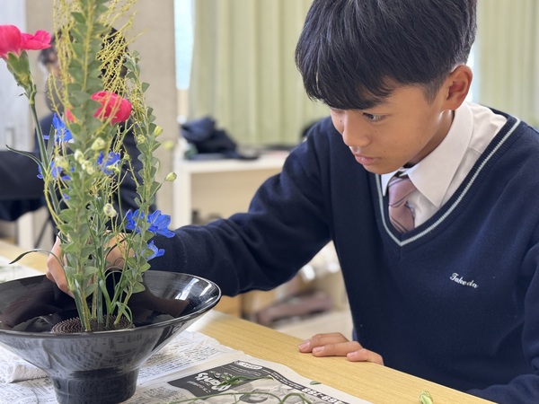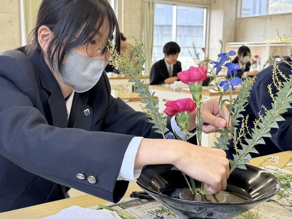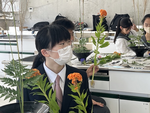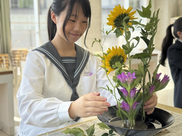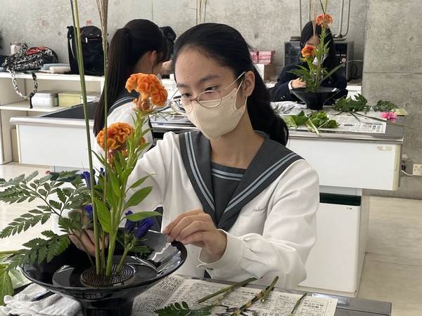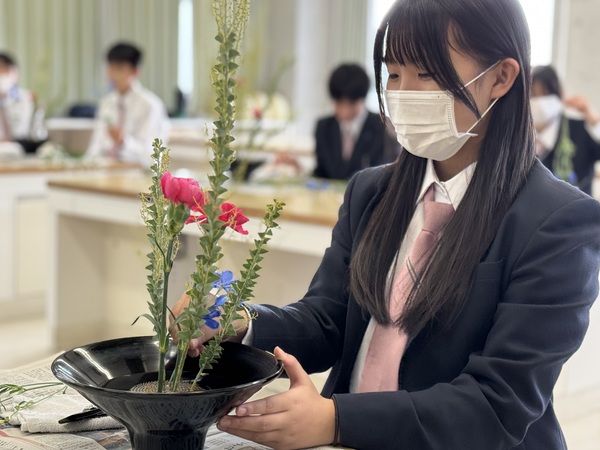 2年生にとっては今回が2回目の華道の授業となりましたが、昨年よりも花の良さをいっそう引き出した作品を生けることができました。