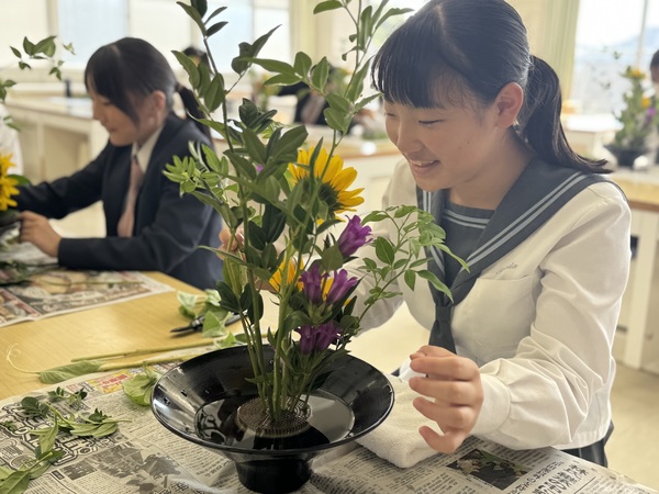 中学2年生は、10月7日(火)と28日(火)に華道の授業を行いました。