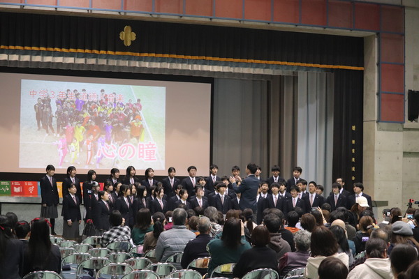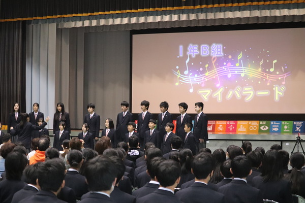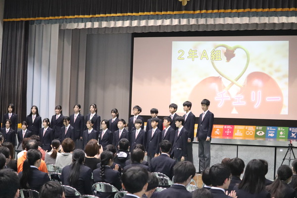 合唱祭では、クラスの話し合いで選び、練習した曲を披露します。3か月間、音楽の授業だけでなく、朝や帰りのHRの時間も使って練習を重ねました。曲の選択にも、パフォーマンスにもクラスの個性が出ていたと思います。温かく、元気の出る、そして美しいハーモニー。クラスの気持ちが一つになった合唱でした。