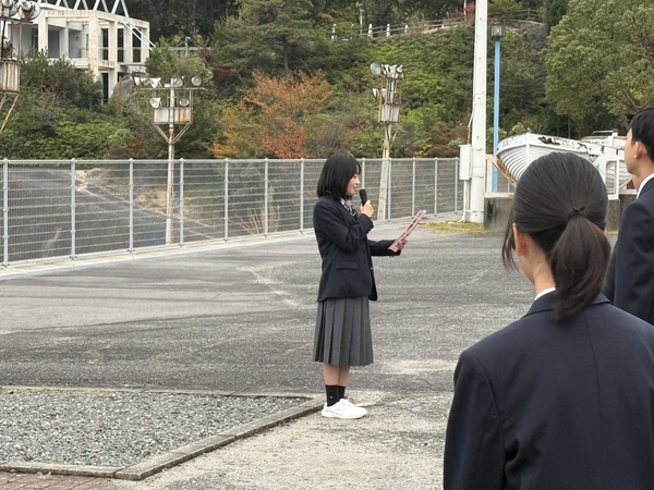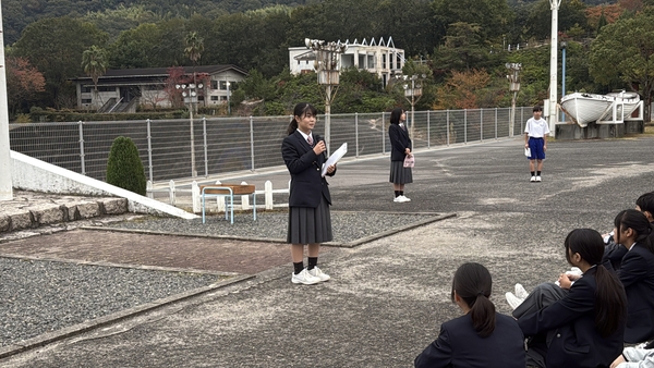 朝の集いでは、武田中学校が司会・旗係・ラジオ体操のすべてを担当しました。代表者によるあいさつでは、英語を交えながら最後に本校でもおなじみのフレーズ「Just do it」で締めくくりました。
