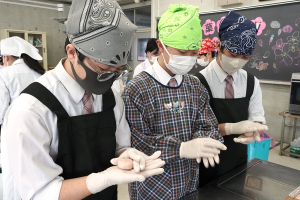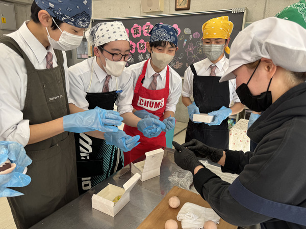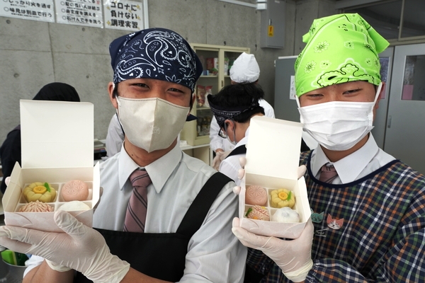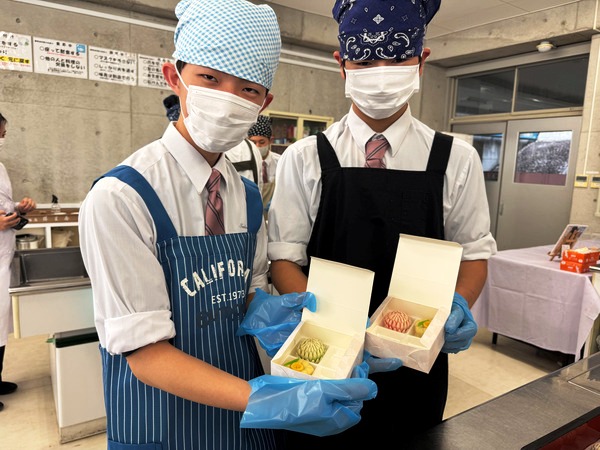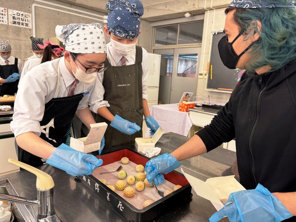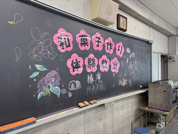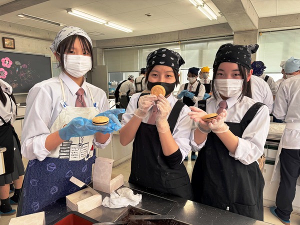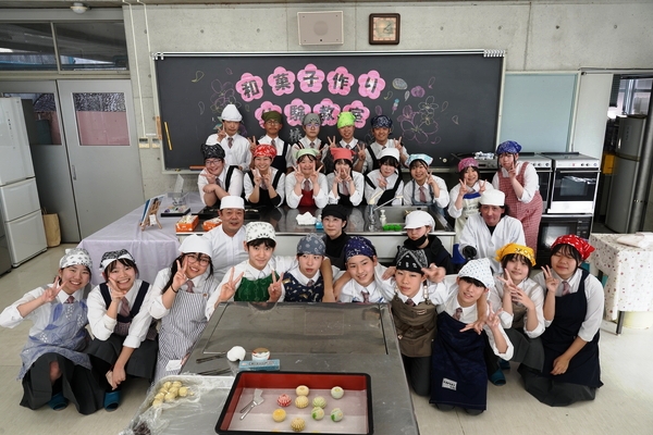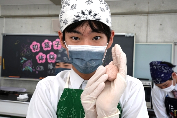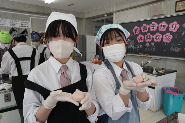 当日は、呉市にある和菓子店「椿庵 博美屋」様にご来校いただき、和菓子作りを教えていただきました。生徒たちは、季節の花をかたどったねりきりや、いちご大福作りに挑戦しました。出来たてのいちご大福はほんのり温かくふわふわで、花の形のねりきりは見た目にも美しく、みんなの笑顔があふれる時間となりました。