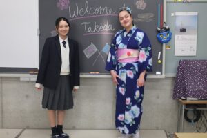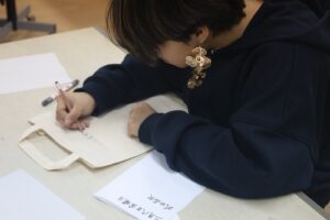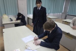 1時間目は、武田のホストシスター・ホストブラザーとともに授業に参加しました。短い時間ではありましたが、日本の学校の授業の雰囲気やクラスの空気を少しでも感じてもらえる機会となったのではないかと思います。