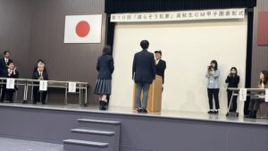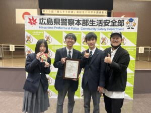 広島県警主催の、第10回「減らそう犯罪」高校生CM甲子園で、第10回大会記念審査員の大窪シゲキ氏による特別賞をいただき、2月5日に広島県庁で行われた表彰式に参加してきました。