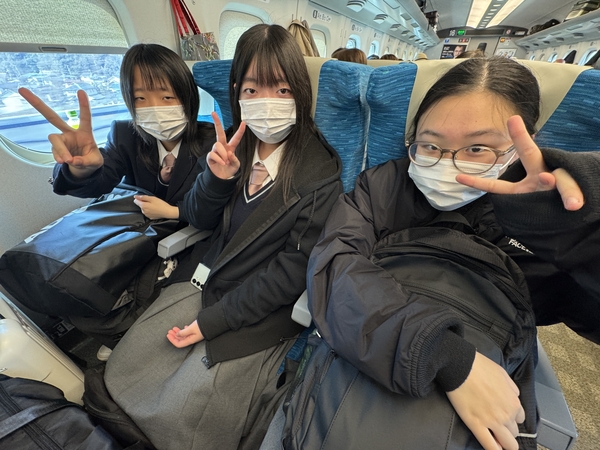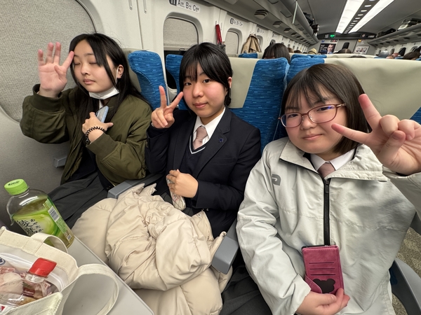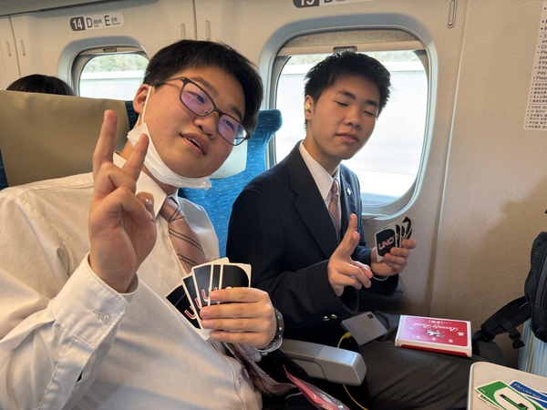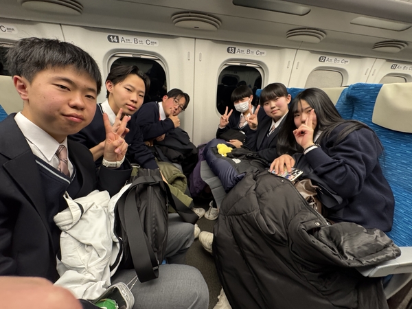 新幹線に乗るのが初めての生徒もおり、これから始まる4泊5日の研修に胸を躍らせている様子でした。また、新幹線での移動時間も、車窓からの風景を眺めたり、友人と会話を楽しんだりと、それぞれが思い思いに過ごしていました。