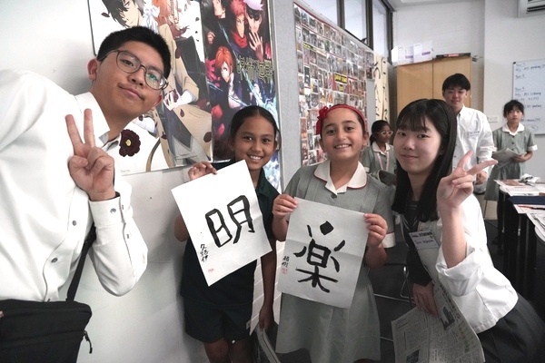 今日は、小学4年生と高校1年生に和文化紹介を行いました。特に小学4年生は反応がとても素直で、表情も豊かで本当にかわいらしく、思わずこちらも笑顔になってしまいました。