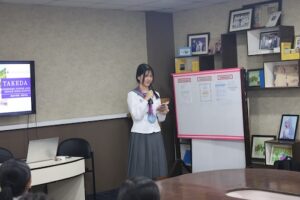 歓迎式では、生徒たちが勉強中の日本語で挨拶をしてくれたり、歓迎のダンスを披露してくれたりと、温かいおもてなしを受けました。武田からも学校紹介のプレゼンテーションや挨拶を行い、互いの学校について理解を深める機会となりました。