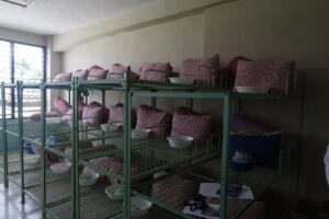 その後武田生1人に2名のSOMのバディがついてくれて学校ツアーになりました。資格をとって卒業後に就職すること目指しているので、設備は業務用でした。一方、生徒一人一人に与えられた居住スペースは畳1畳にも満たない3段ベッドであることには驚かされ、武田生は自分が恵まれていることを考えさせられたと思います。