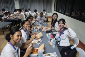 明日は、これまで準備してきた内容をもとに、今度は武田の生徒たちがSOMの生徒に日本語を教える活動が予定されています。ホテルに戻った後も、各グループが集まり、明日の授業に向けて熱心にリハーサルを行っていました。海外だからこそ学べること、感じることは数多くあります。今回の経験一つ一つを大切にし、感謝の気持ちを持って、引き続き積極的に学びを深めていくことを期待しています。