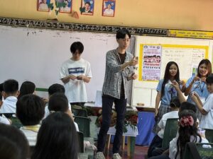2026年3月17日(火)海外研修4日目は、午前中に公立小学校を訪問し、日本文化紹介と給食ボランティア活動を行いました。不慣れな私たちをサポートするために普段からボランティアを行っている地元の高校生も参加してくれました。まずは高校生と自己紹介をしました。