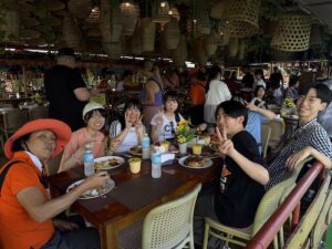 昼食は、ボホール島名物のロボック川クルーズでのビュッフェスタイルの食事を楽しみました。船上で移動しながら食事をとり、現地の音楽の生演奏も楽しむことができ、非日常的で贅沢な時間となりました。