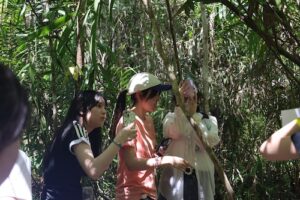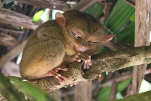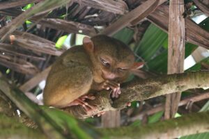 最初に訪れたのは、世界最小の霊長類であり絶滅危惧種であるターシャ=メガネザルの保護施設です。移動中のバスでは、コーディネーターさんからターシャの生態や生息環境、乱獲によって絶滅の危機に瀕した背景などについて詳しく説明を受けました。