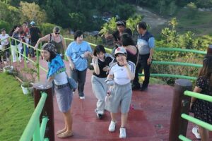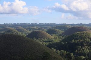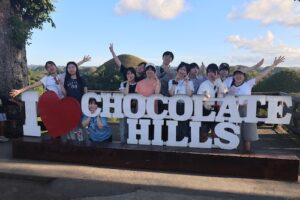 続いて訪れたのは、ボホール島を代表する自然景観であるチョコレートヒルズです。石灰岩からなる台地が隆起し、その後長い年月をかけて雨水などによる侵食を受け、現在のような円錐状の丘が形成されました。乾季には草が枯れて茶色くなることから、その名が付けられています。地学的にも非常に興味深く、教科書で学んだ内容と実際の自然を結びつける貴重な機会となりました。