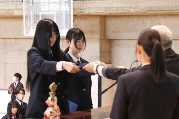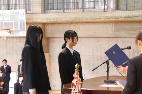 SHR後に全校生徒が体育館に集まり、まずは表彰式が行われました。