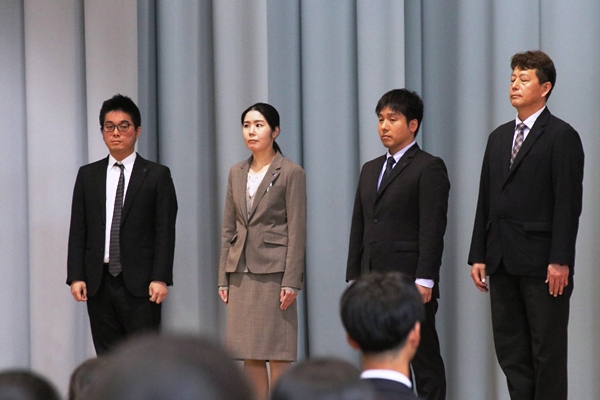 今年度は6人の新しい先生(本日は4名の先生が出席)をお迎えします。保健体育科の永井輝昌先生から代表して挨拶がありました。先生方、どうぞよろしくお願いいたします。