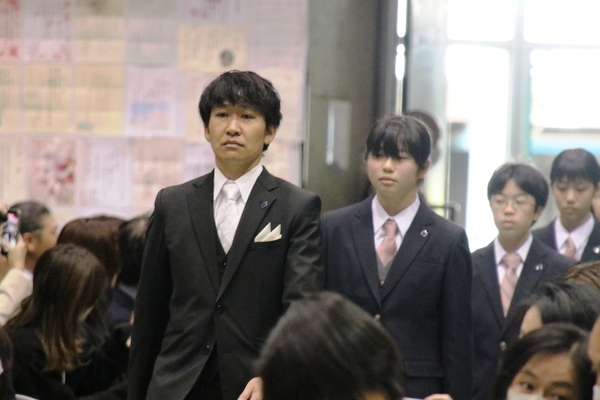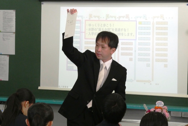 入学式の後は、各クラスで最初のHRです。担任、副担任の自己紹介、そしてクラス目標などが各担任から語られました。