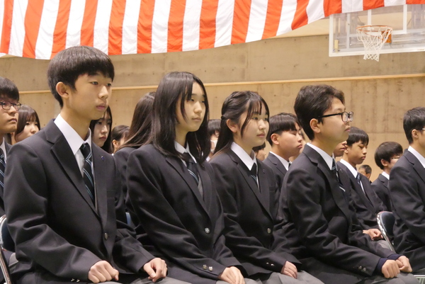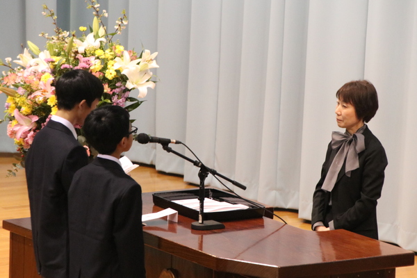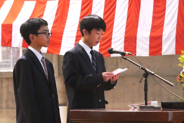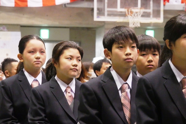 その後は体育館での入学式。たくさんの保護者の方にも出席していただき、おかげさまで温かく立派な式となりました。
