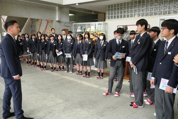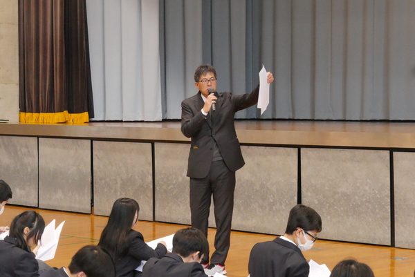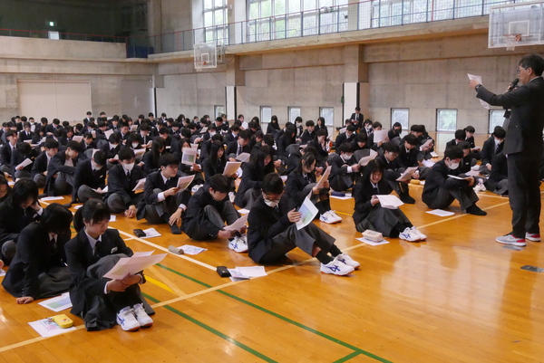 学年集会では、武田での学校生活について主任や各担当の先生方から話がありました。これまでの小学校、中学校での生活との違いに戸惑うところもあったかもしれませんが、新たな気持ちで頑張って欲しいと思います。(写真は高校生1年生の学年集会の様子です)