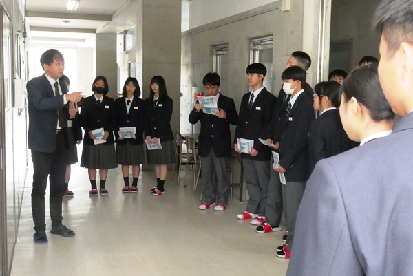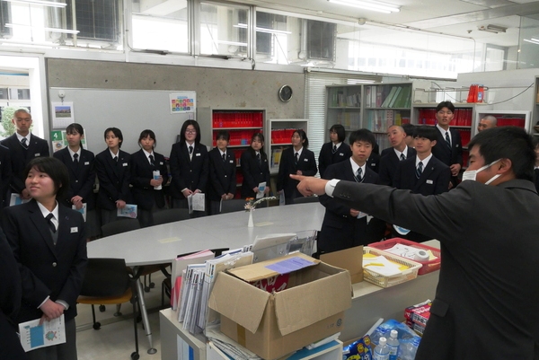 そして、校内を担任が案内して、いろいろな教室の場所や利用の仕方などを確認しました。中には、職員室への入室の仕方を実演して見せてくれた内部生もいました。