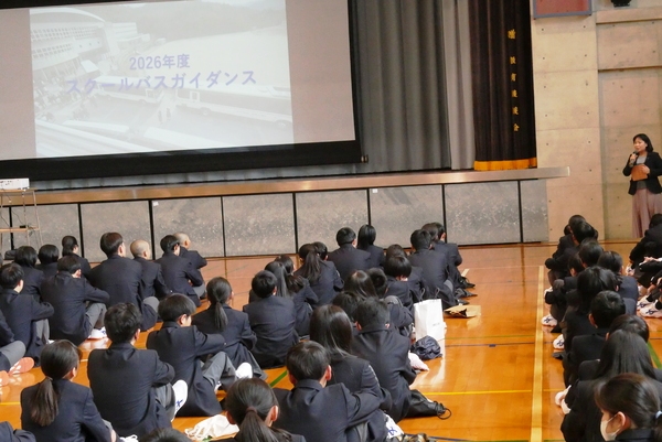スクールバスの利用の仕方についてのガイダンスを新入生に対して行いました。本日の帰りのスクールバスから指定席となります。