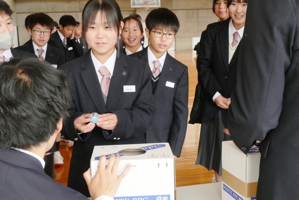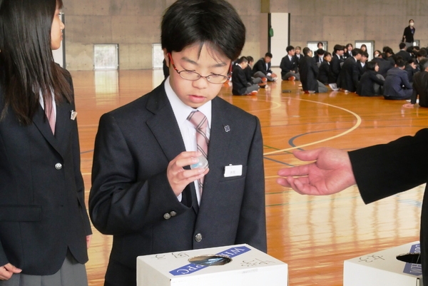 スクールバスガイダンスの後は、体育祭の団決めです。本校の体育祭は赤団・青団・白団に分かれての対抗戦で、ここで引くくじ(カプセルに色の付いた紙が入っている)で団が決まり、それは3年間・6年間変わりません。みんなドキドキしながら団決めを行いました。仲の良い友人同士が同じ団になって「やったー!」と喜ぶ姿も多くありました。