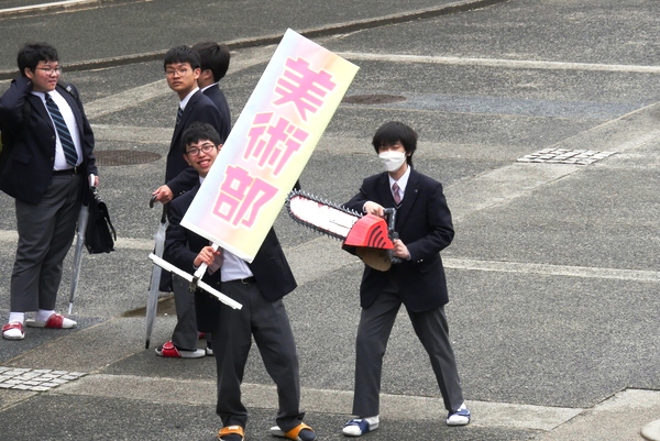 各クラブの活動場所を新入生が訪ねていき、顧問の先生やクラブ生から説明を受けたり、実際に練習に参加したりします。廊下や外に飛び出して、一生懸命に新入生を勧誘するクラブもありました。